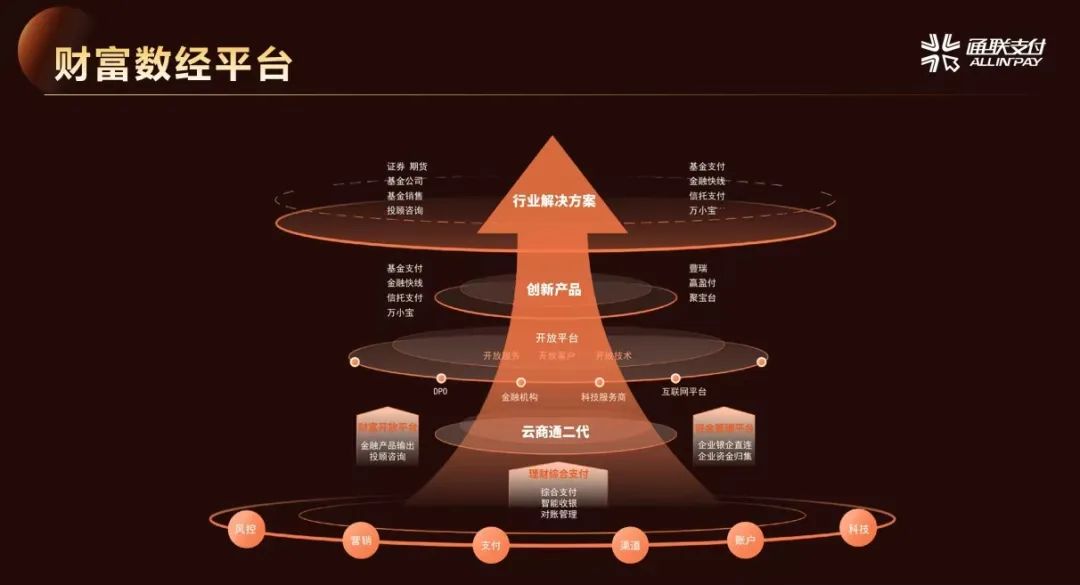 会上,,,基于云商通底座,,,Topay钱包介绍了多款财富行业创新业务产品。。。Topay钱包整合财富综合支付、、、资金管理及增值服务,,,升级打造中的财富数经平台,,,将更聚焦客户需求定制解决方案。。。针对基金行业机构在支付环节面临的额度受限、、、效率低、、、成本高、、、客户要求高等问题,,,推出了“金融快线”“证正好”“赢盈付”“签约支付”等系列细分产品,,,针对性解决客户需求。。。